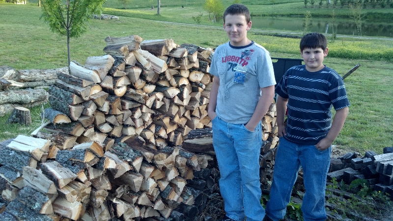 Becky and I also had Ryder and Braden (My two oldest nephews) staying with us this week, so I had a good bit of help getting the wood split and stacked after I cut it up into manageable sizes.